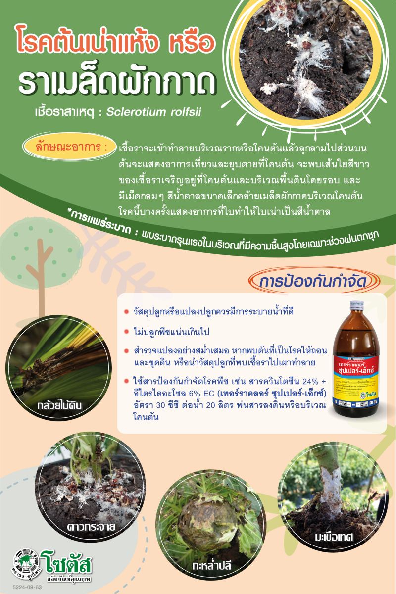 โรคต้นเน่าแห้ง หรือ โรคราเมล็ดผักกาด (Stem rot)